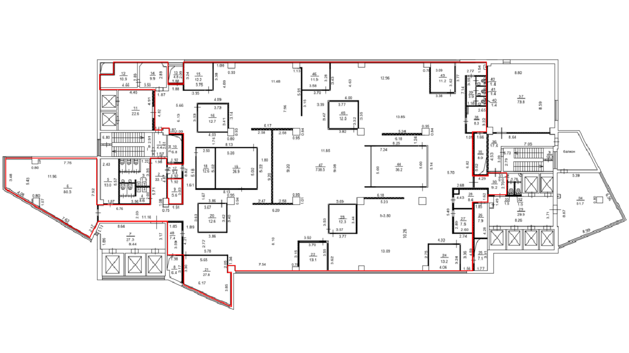 - Общая площадь здания 78 643 м2