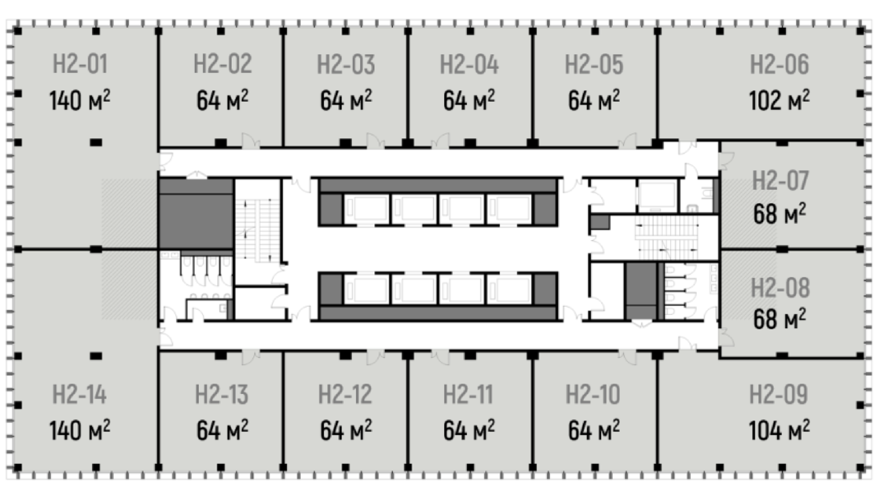 Офис 64 м2 Этаж 14 - № H2-1406