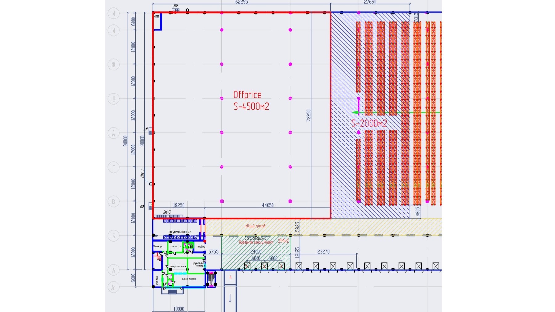 - Шаг колонн 12х24