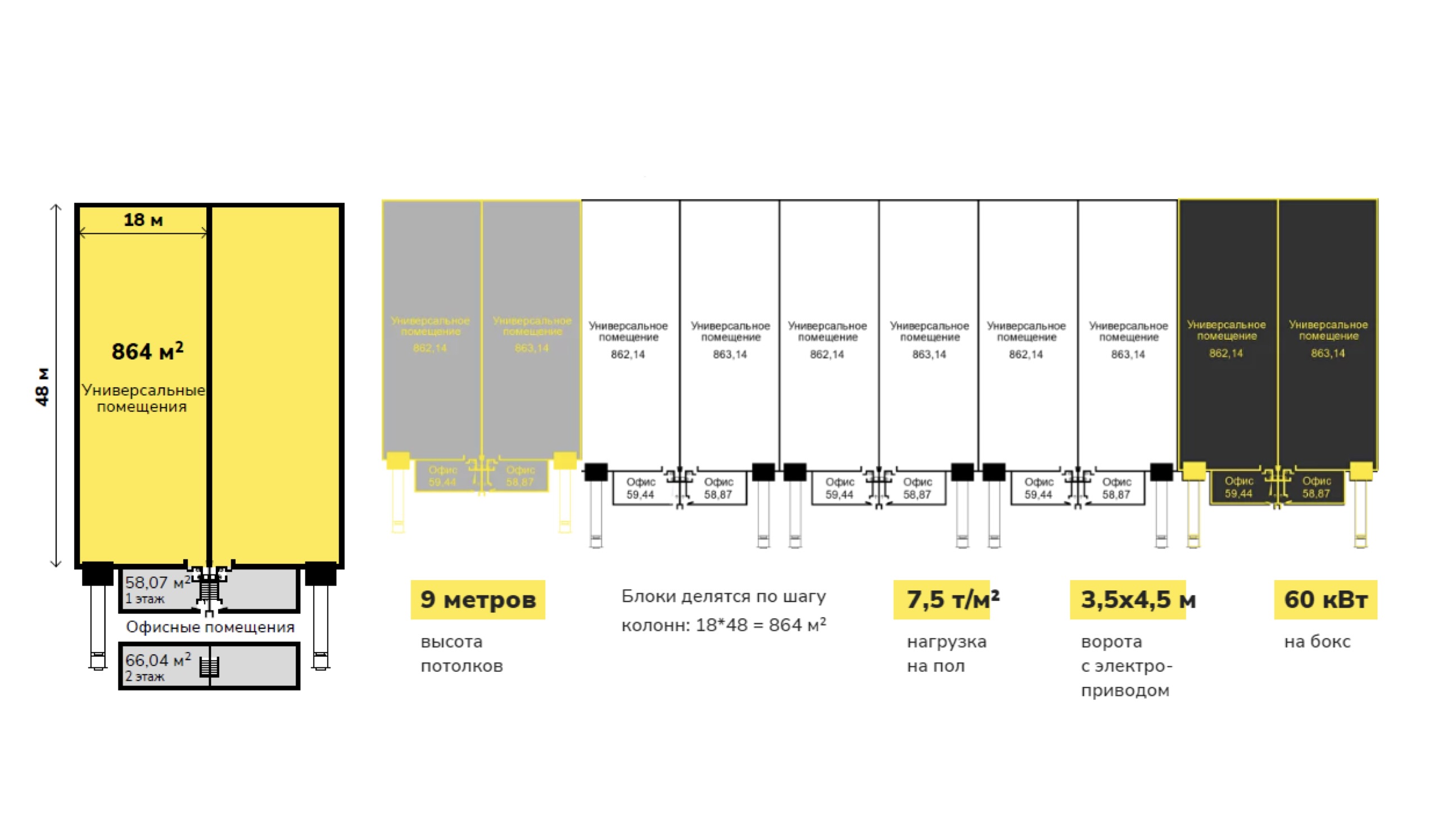 - Свободная площадь блока от 1 032 м2