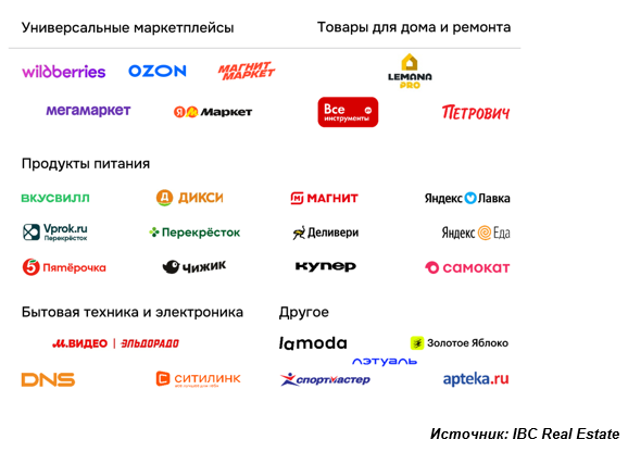 мультикатегорийных игроков и продуктовых ритейлеров