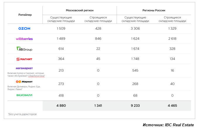консолидации, как с точки зрения онлайн-продаж, так и с точки зрения складских мощностей. Ритейлеры не только наращивают объемы онлайн-продаж, но и формируют логистическую инфраструктуру всей страны. После интенсивного развития на протяжении последних лет, крупнейшие игроки на складском рынке и на рынке онлайн-ритейла – мультикатегорийные маркетплейсы – выстраивают стратегию по дальнейшему освоению регионов посредством точечной оптимизации логистики.” – отмечает Екатерина Ногай, руководитель департамента исследований и аналитики компании IBC Real Estate.