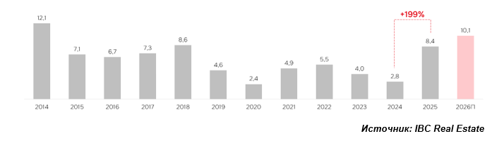 В 2026 году аналитики IBC Real Estate ожидают снижение темпов ввода в Северной столице. В Санкт-Петербурге, в случае ввода всех заявленных проектов, номерной фонд пополнится на 616 номеров, что на 23% станет ниже показателя год к году. В Москве объем нового строительства гостиничных объектов останется на том же уровне.