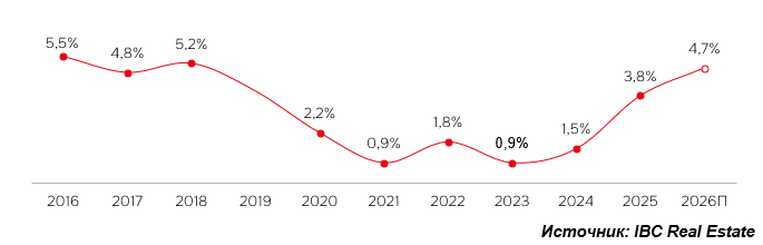 этот цикл закончился. Коррекция, которую мы наблюдаем сегодня, происходит более плавно, рынок ищет баланс, что, по нашим прогнозам, продолжится на протяжении всего 2026 года. Рост стоимости строительства и рост заработных плат в отрасли практически стабилизировались, спрос в регионе возвращается к средним значения 2015-2022 годов, все участники рынка с осторожностью ищут точки баланса,” – резюмирует Евгений Бумагин.